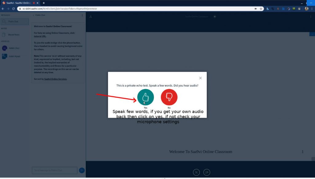 For experiencing smooth operation of the Virtual Classroom, Internet Uploading & Downloading speed should be at least “512Kbps”.